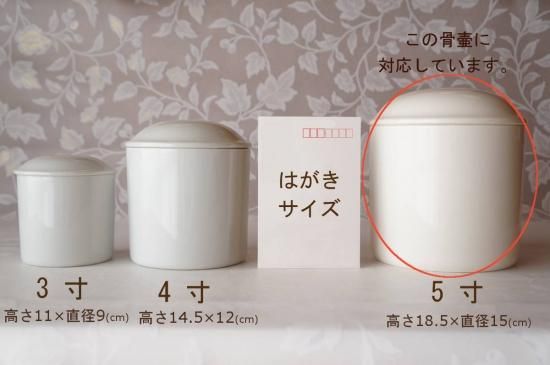 ●ペットを火葬された際に、火葬場で陶器の骨壷に入れてのご返骨だった場合には、その骨壷のままこちらの骨壷カバーに入れられるサイズかどうか、ご確認をお願いいたします。