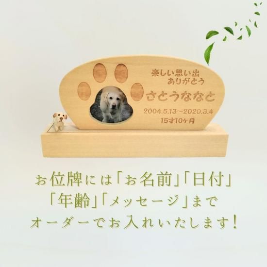 ペットちゃんのお名前・お誕生日〜命日・年齢・ひとことメッセージを、ご家族様のご希望でオーダーメイドでお入れします。